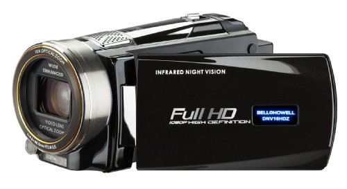 Bell+Howell's new DNV16HDZ 1080p NIGHT VISION camcorder captures videos and pictures, day or night. It is Bell+Howell's new and improved night vision camcorder with 16 megapixels FULL HD video resolution, 10x Optical Zoom and 120X digital zoom, and longer battery light in night vision mode. An Infrared LED, with up to 16 feet of coverage, and a 3-Inch Wide-Screen Touch LCD are ideal for night scenes and low-light conditions. With the 64GB capacity dual SD storage slots you can record hours of video and thousands of pictures. The camcorder includes a high-capacity Li-ion battery, charger, case, image editing software, and HDMI, A/V and USB cables.